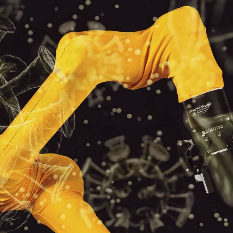 ユニバーサルロボット様ご協力のもと、URロボット本体で繰り返し着用検証試験を実施しております。そこで得た実績とデータから何度もサンプルを製作し、広範囲に稼働するURロボットに負荷をかけず安全に動作する仕様設計を実現しました。